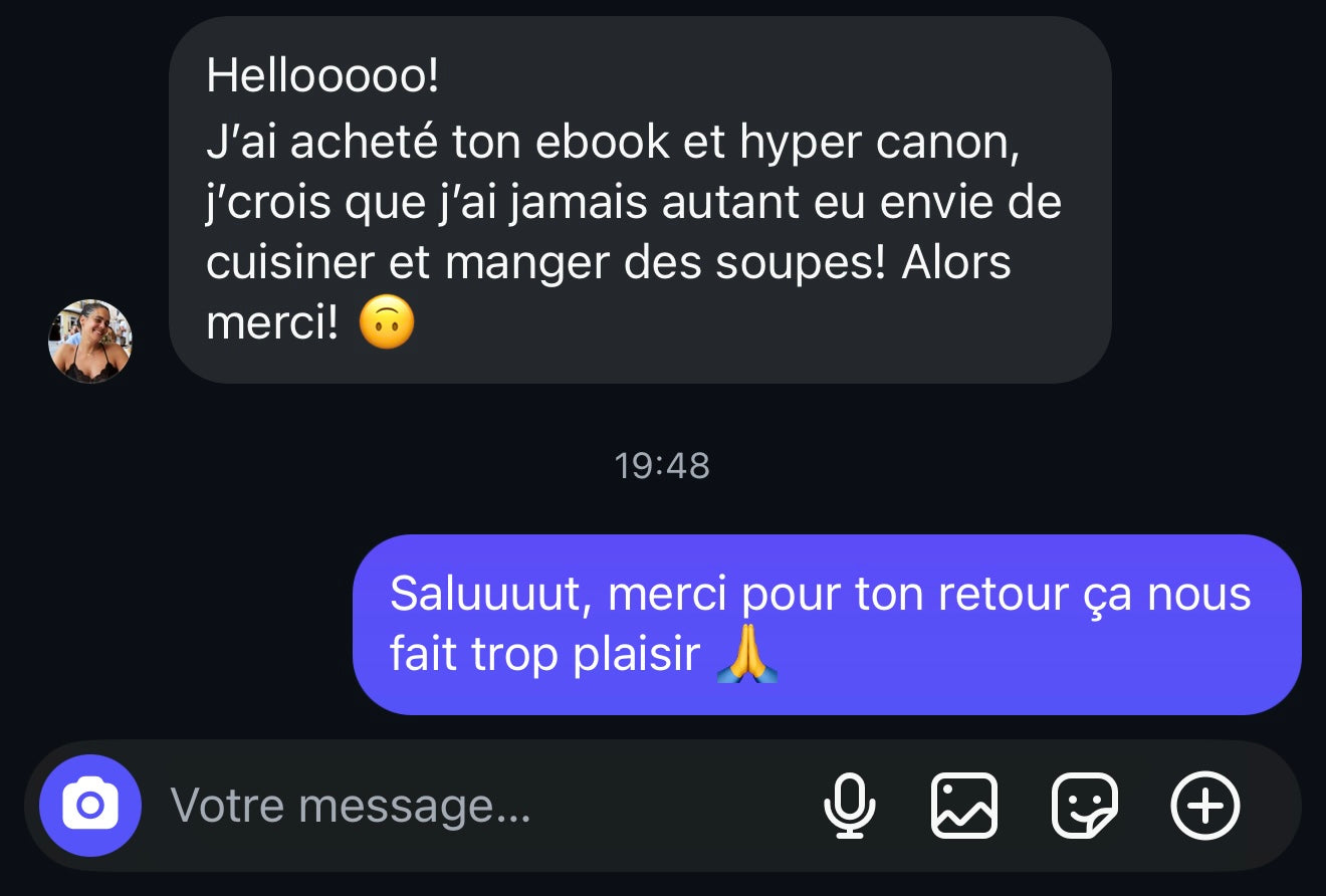 Mon objectif est simple : te donner envie de cuisiner sans pression, de redécouvrir les soupes… et de te sentir libre derrière une casserole.